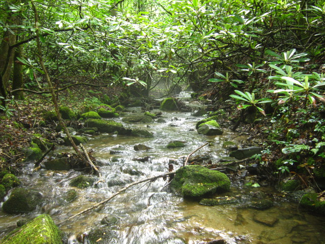 The park is beautiful; full of babbling brooks and rhododendrons, and everything was so green! We soon found out why. As soon as we had set up, it started to rain, and continued to rain until well into the evening. We found out that even if it wasn't raining a few miles away, as soon as you got into the park, the drizzling would start. Everything was saturated, but oh, so lush.