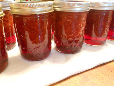 The finished result; nine jars of jam. For some reason it separated a little, but I am sure it will still taste wonderful.