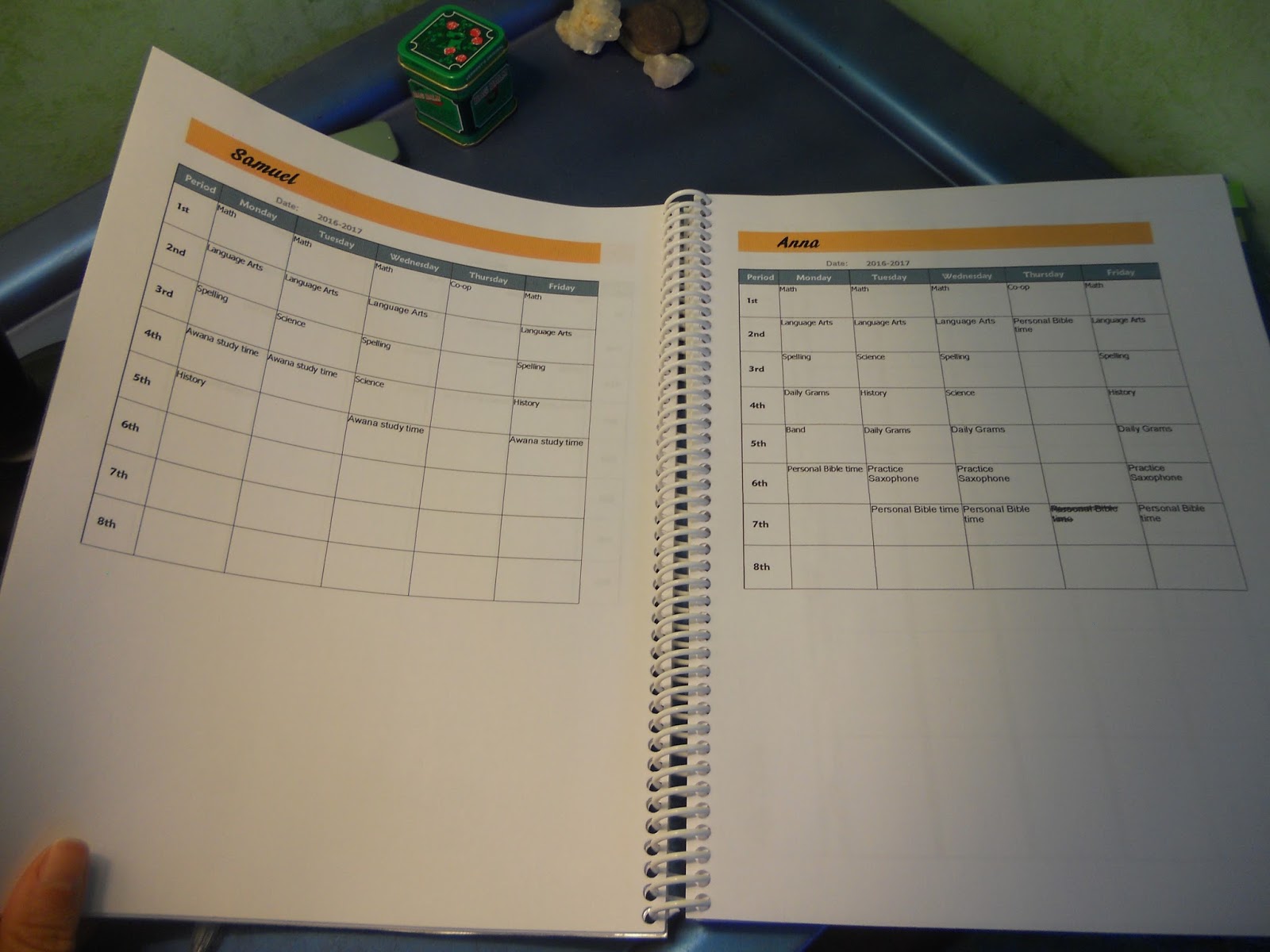 The first pages in my planner are attendance keeping charts for all of my children. It seems silly to keep attendance for a homeschool, but the state I live in requires it. I don't have copies of this to download, but you could easily make your own. Next I have student schedules. This helps the kids and I keep track of what needs to be done each day.